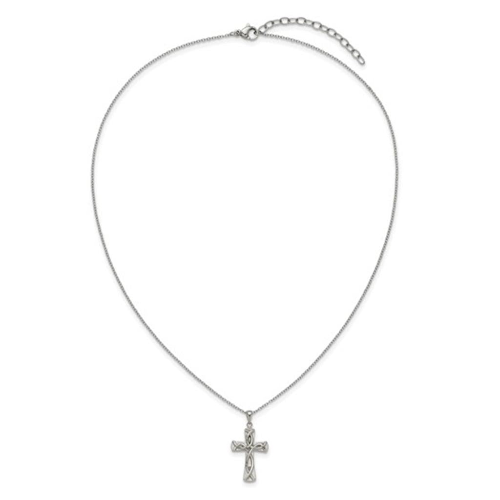 Stainless Steel Polished Cross w/18''+ 2'' Ext Cable Chain