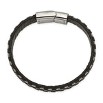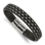 Stainless Steel Wire Cable and Black Leather 8.5'' Bracelet