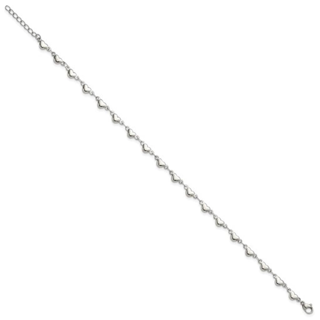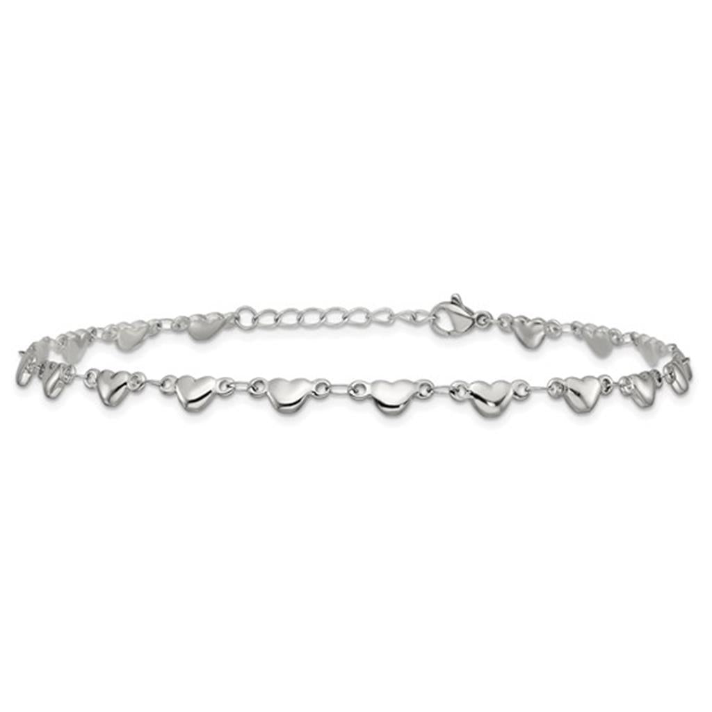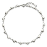 Stainless Steel Polished Hearts Anklet 9'' Plus 1'' Extender