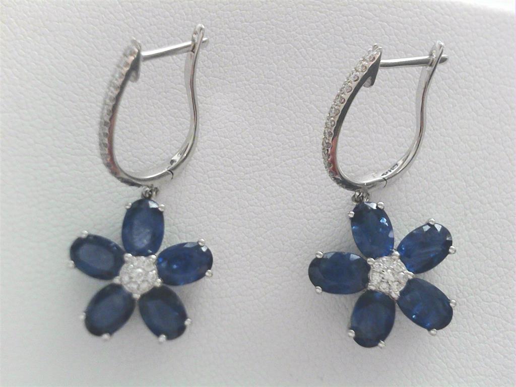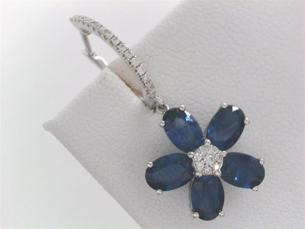 18Kt Wht .23ct Diamond / 6.16ct Blue Sapphire Leverback Dangle Earrings