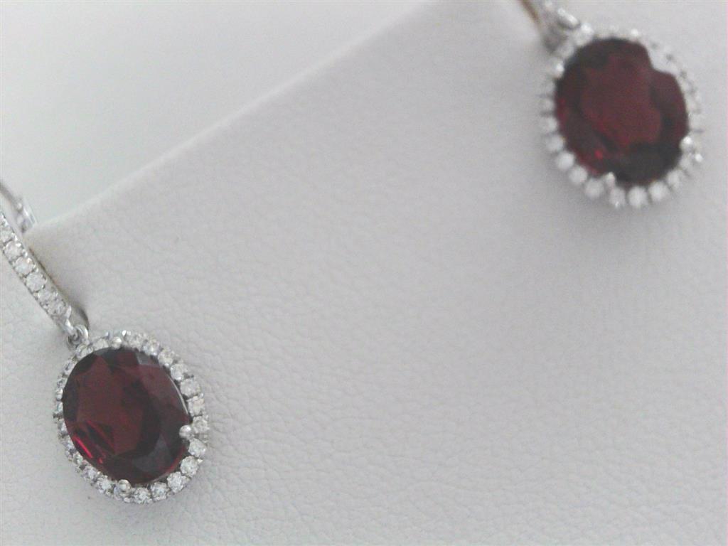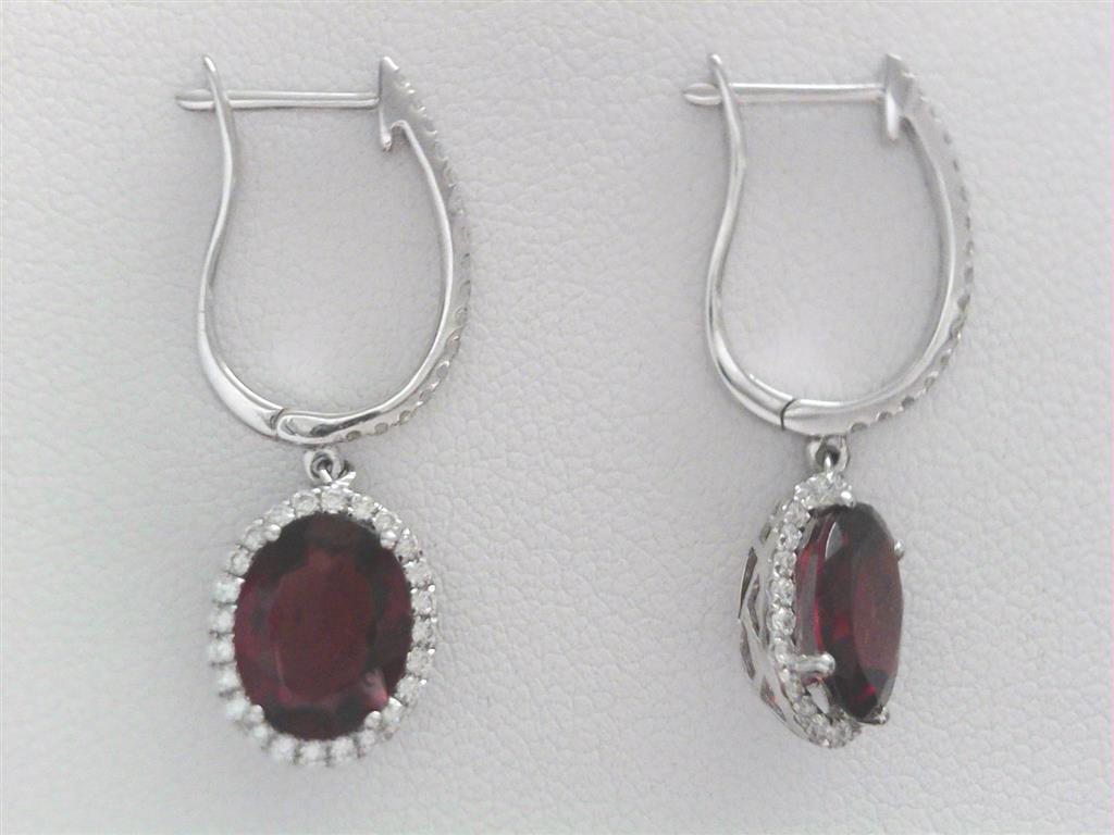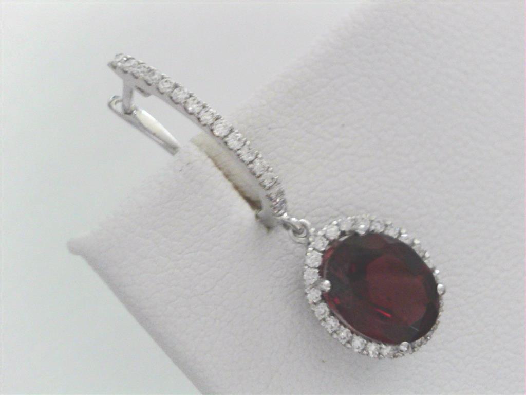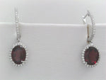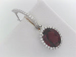 18Kt Wht .45ct Diamond / 3.41ct Oval Garnet Leverback Dangle Earrings