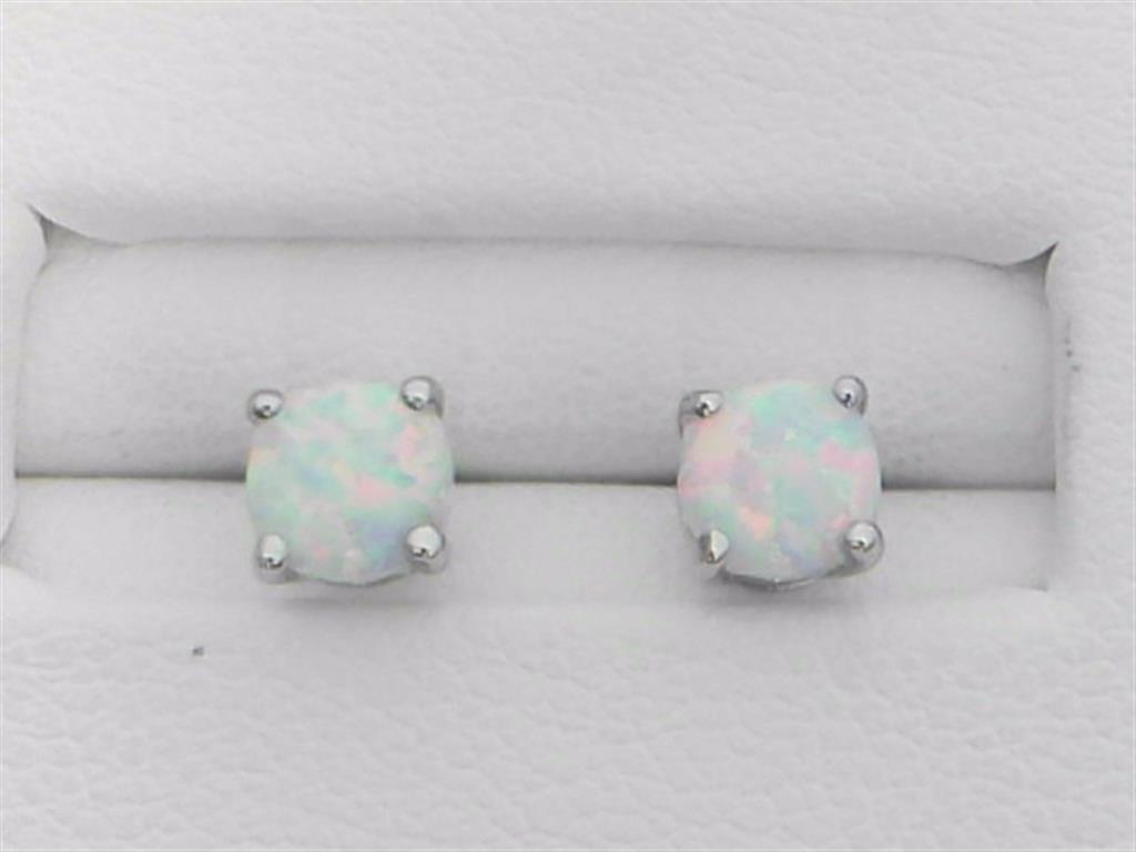 14Kt Wht 5mm LAB Created Opal Stud Earrings