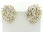 18Kt Y 5.69ct Opal / .13ct Diamond Leaf Style Omega Back Earrings