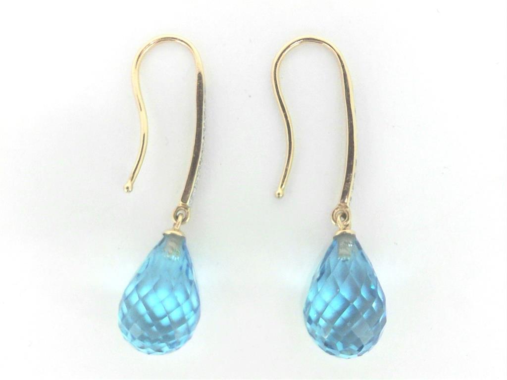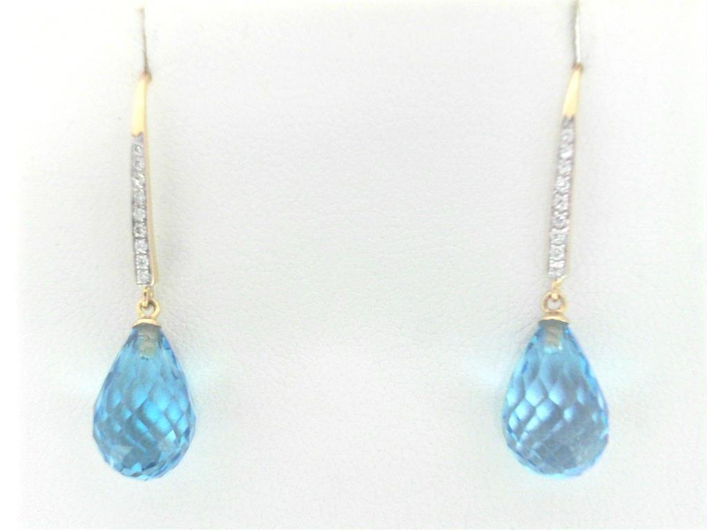 18Kt Y 13.09ct Blue Topaz / .09ct Diamond Shepard Hook Dangle Earr ings