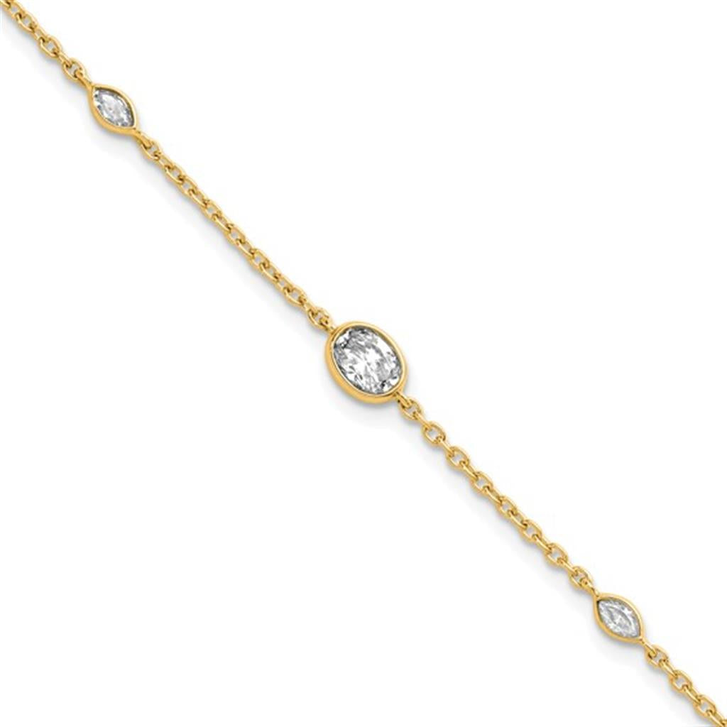 14Kt Y .44ct F VS1 3-Stone Lab Diamond Bezel Station 7.5'' Bracelet