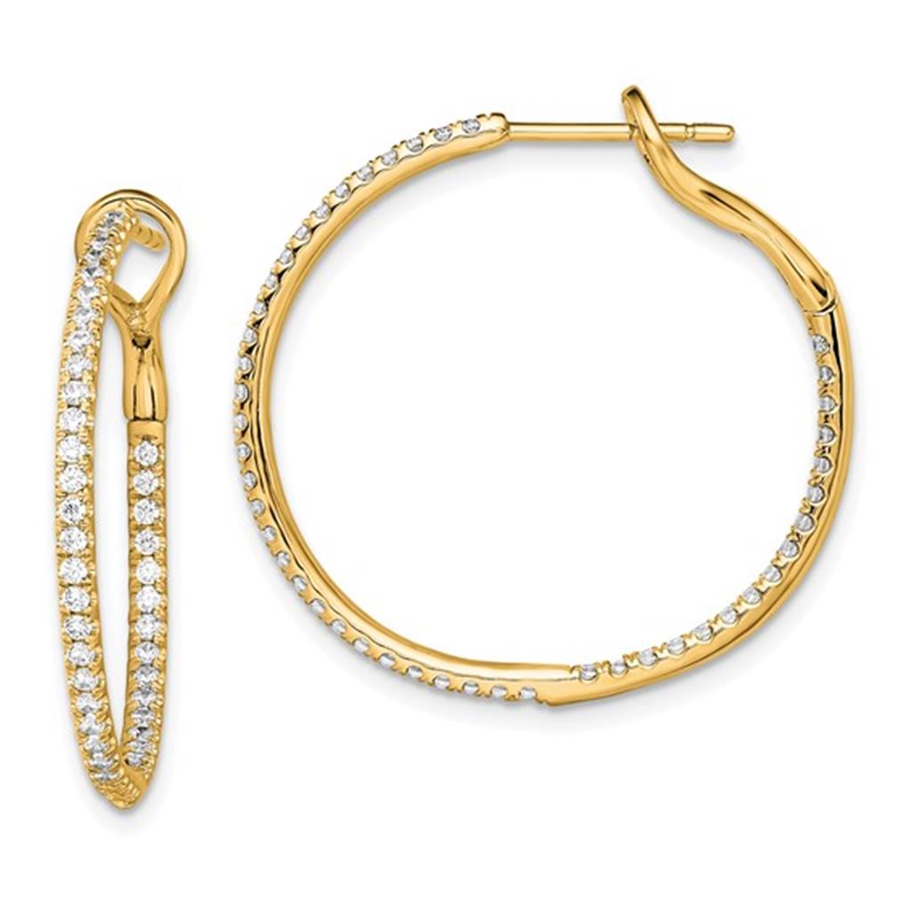 14Kt Y .74ct G VS1 Lab Diamond In & Out Omega Back Hoop Earrings