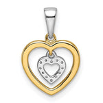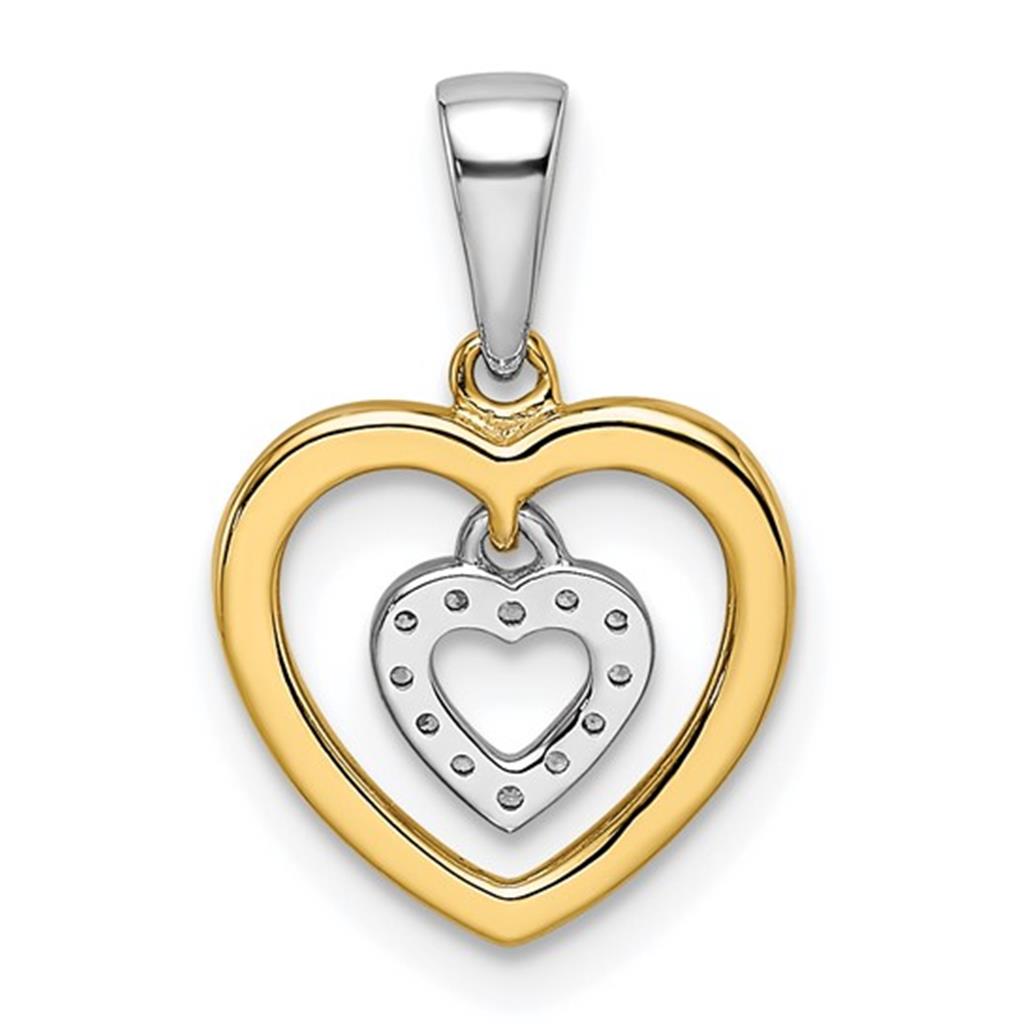 14Kt T/T .05ct Mini Diamond Dangle Heart & Polished Larger Heart Pendant