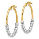 14Kt T/T Polished Oval and Bead Hoop Earrings