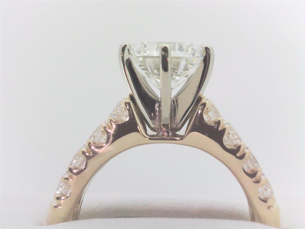 14Kt Y 1.44ct G VS1 LAB Diamond Miunting/2.50ct G VS1 Round LAB Center Diamond Engagemebt Ring (Size7)