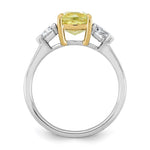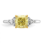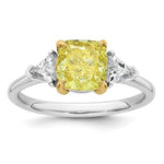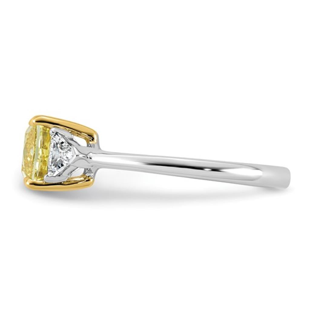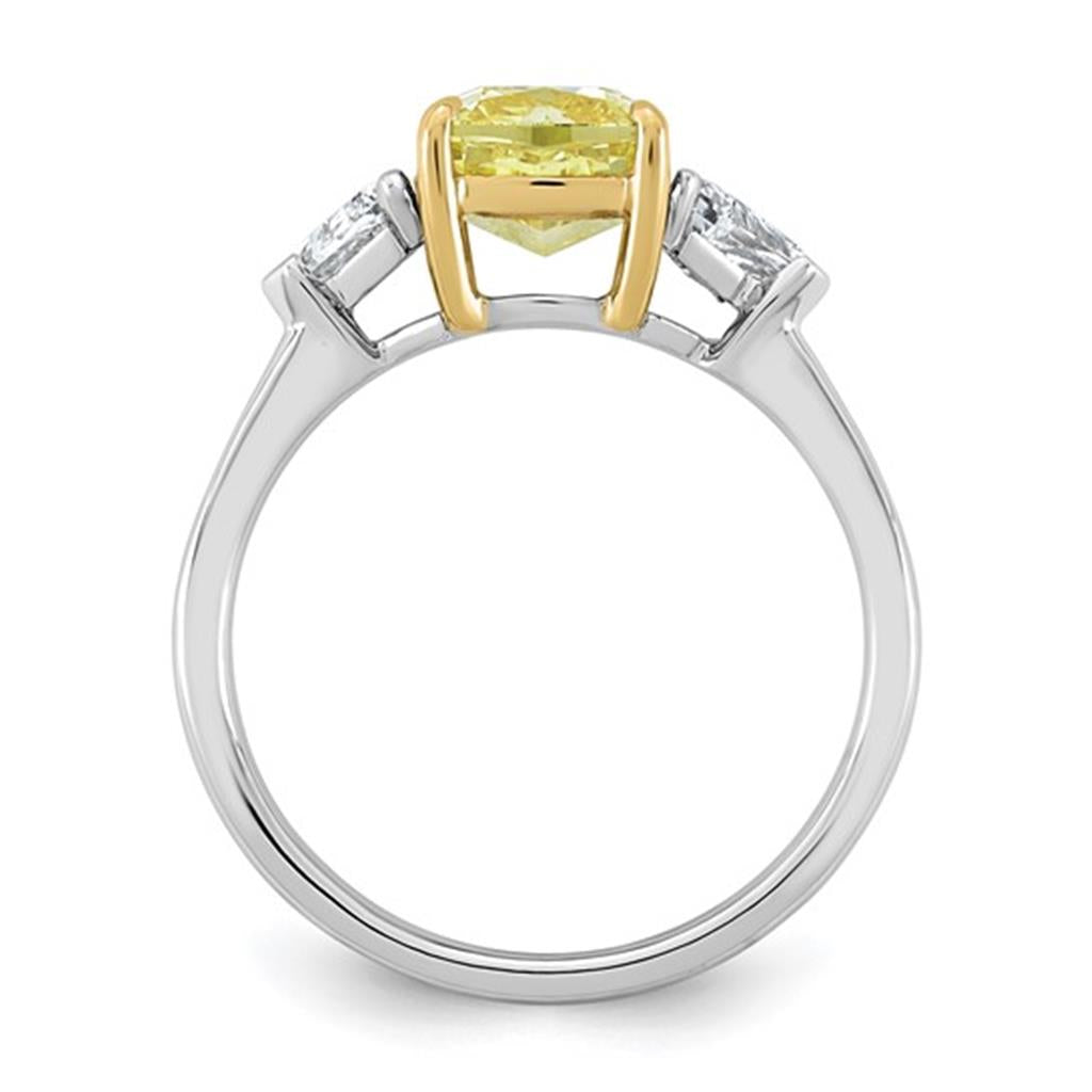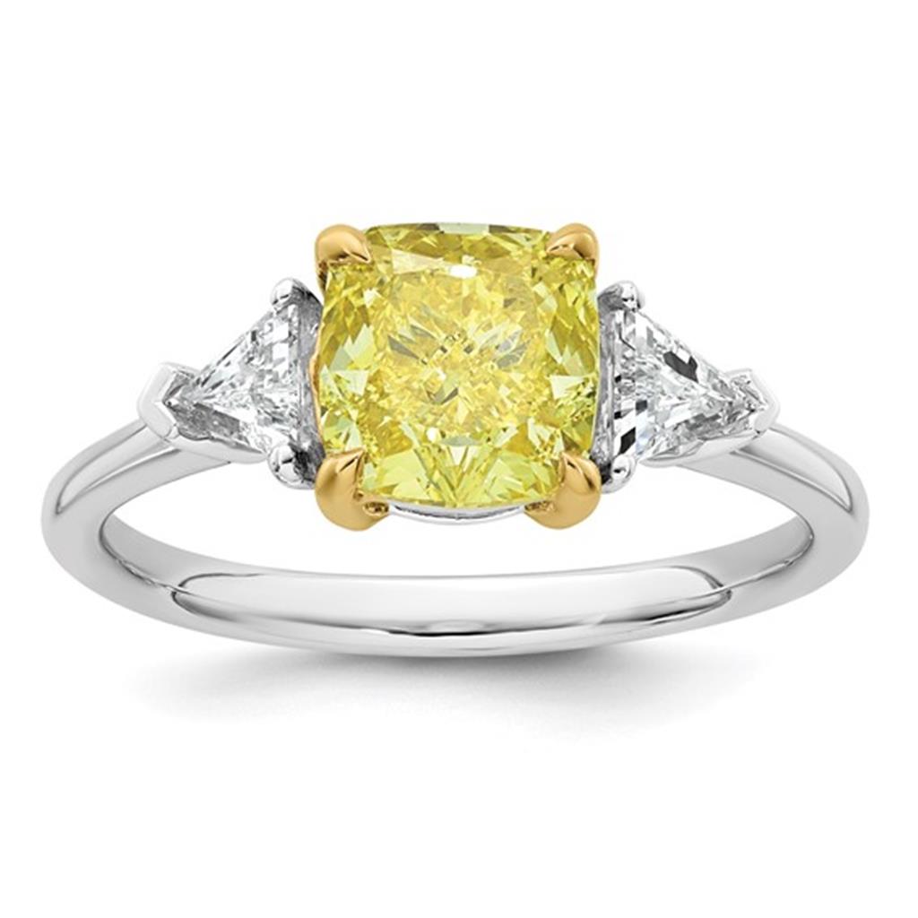 2.00ct Vivid Yellow Cushion VS1 Lab Diamond Center/.45ct F VS1 Lab Diamond Trillion Sides 14Kt White & Yellow Engagement Ring (Size 7)