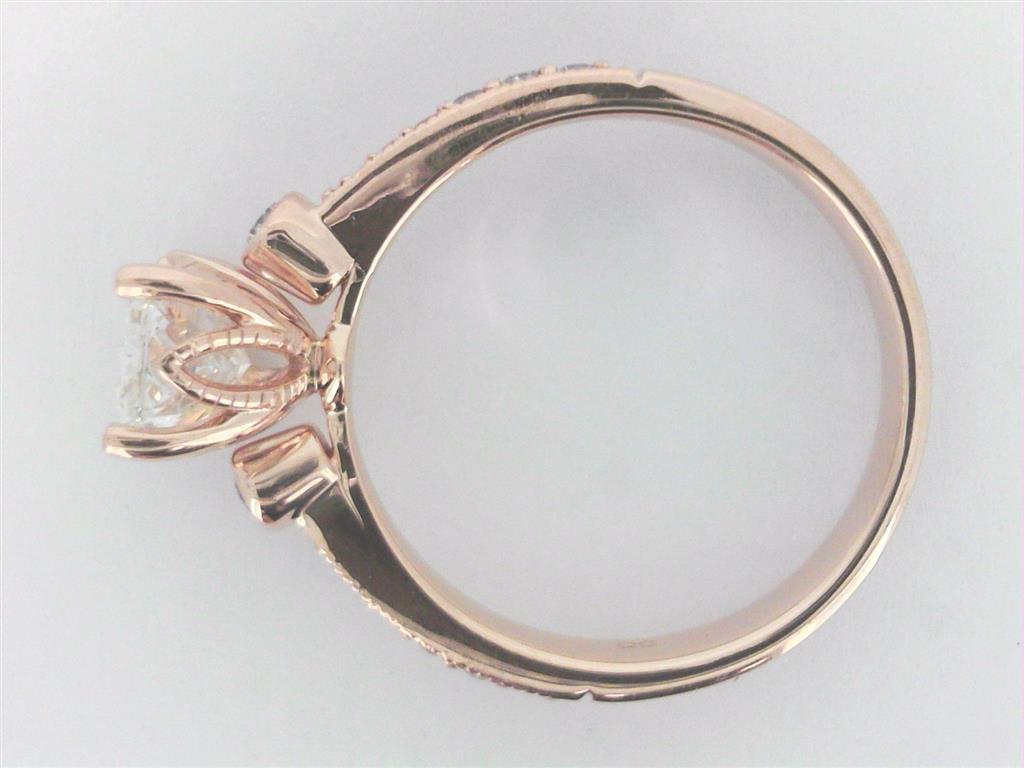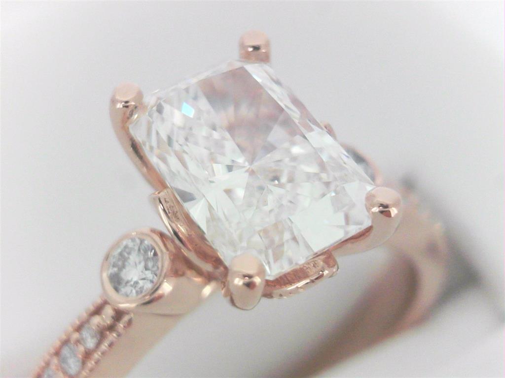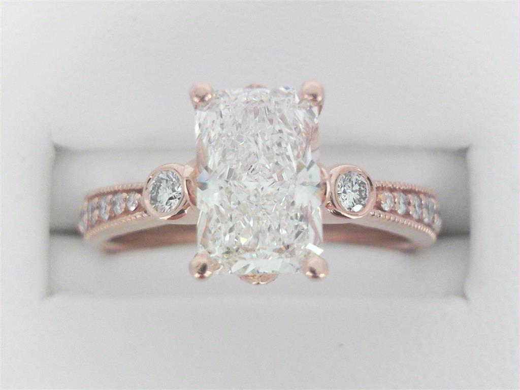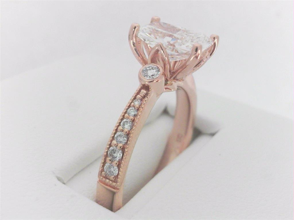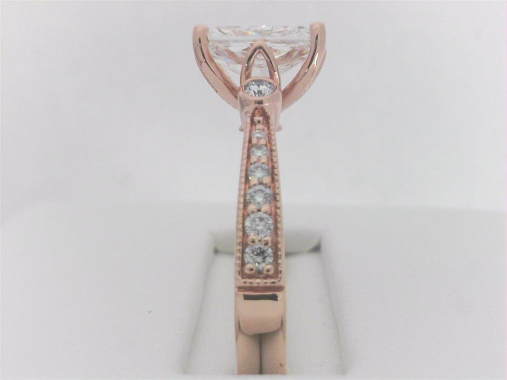 14Kt Rose 1.35ct G VS2 LAB RAD Center/.19ct H-I SI1-SI2 MINED Mounting Diamond Engagement Ring (Size 7)