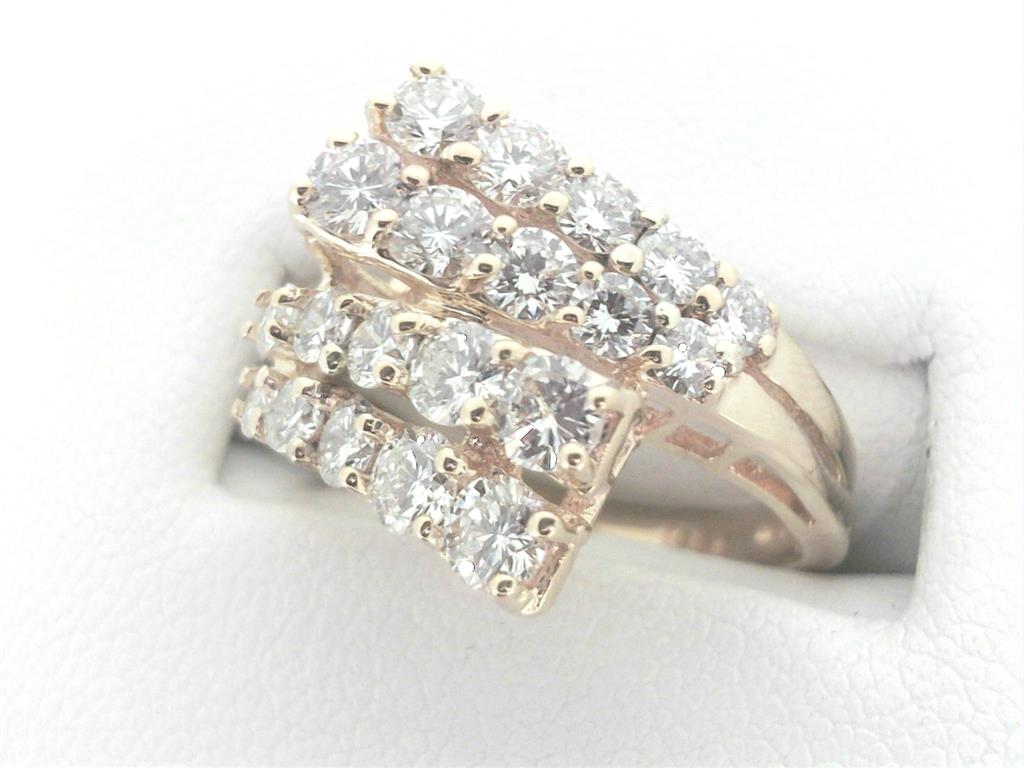 CONSIGNMENT - 14Kt Y 1.36ct H-I SI2-SI3 Diamond Double Row Bypass Ring (Size 4 3/4) (SOLD AS IS - FINAL SALE) NOTE: 1- End Diamond has Small Chip