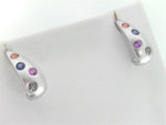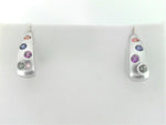 14Kt Wht Brushed 4- Stone Multi Gem Stone Post J-Hoop Earrings