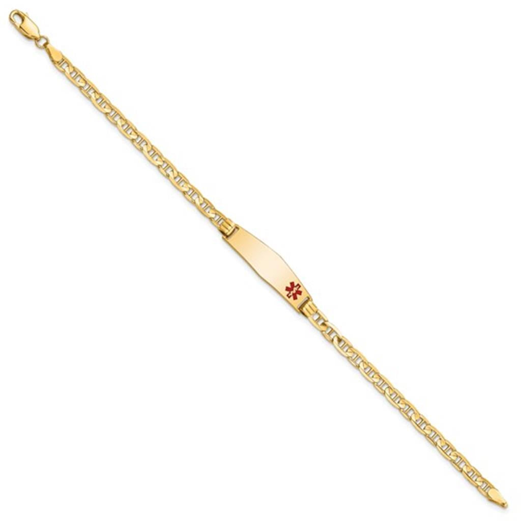 14Kt Y 7'' Soft Dia-Shape w/Red Enamel Emblem Anchor Bracelet