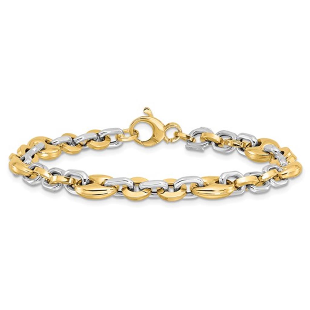 14Kt T/T Polished Fancy Link 7.5'' Bracelet