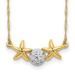 14Kt Y w/Rhodium Brushed/Polished Sand Dollar Starfish 17'' Necklace