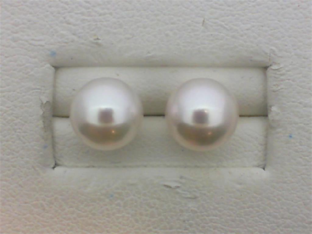 8mm Round White Saltwater Akoya Cultured Pearl 14Kt Y Earrings