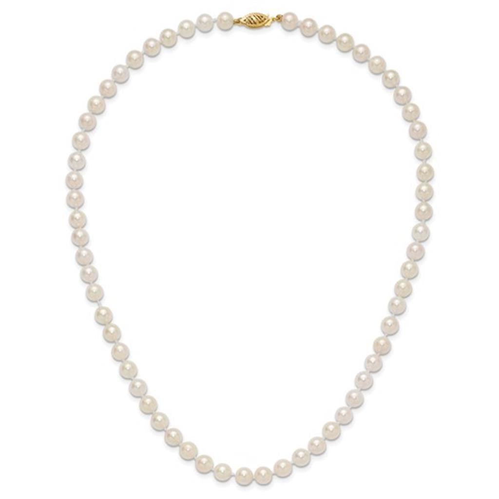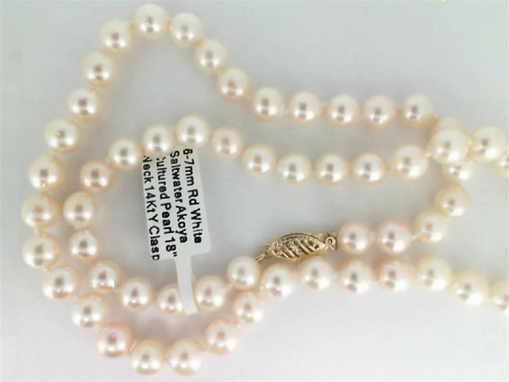 6-7mm Round White Saltwater Akoya Cultured Pearl 18'' Necklace w/14Kt Y Clasp