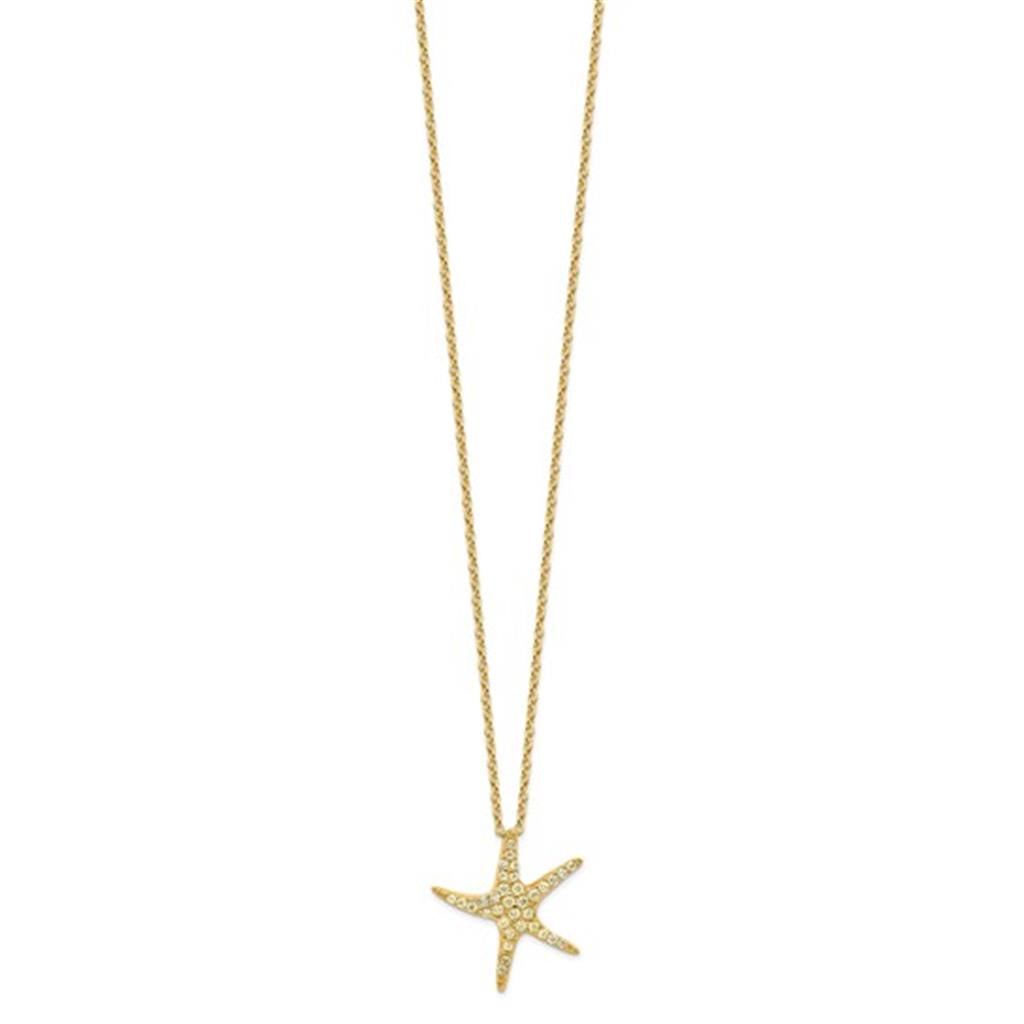 Sterling Silver Yellow-Plated CZ Starfish Pendant w/16+2'' Cable Chain