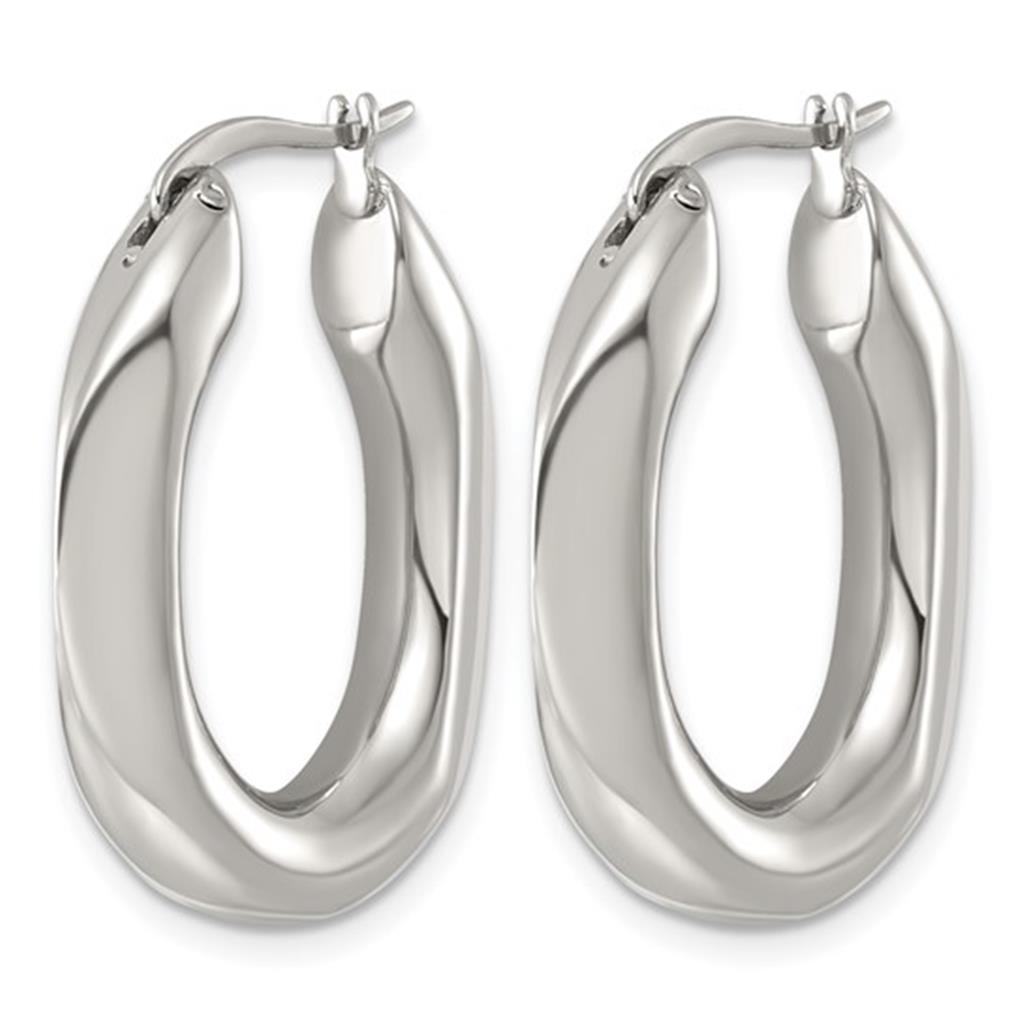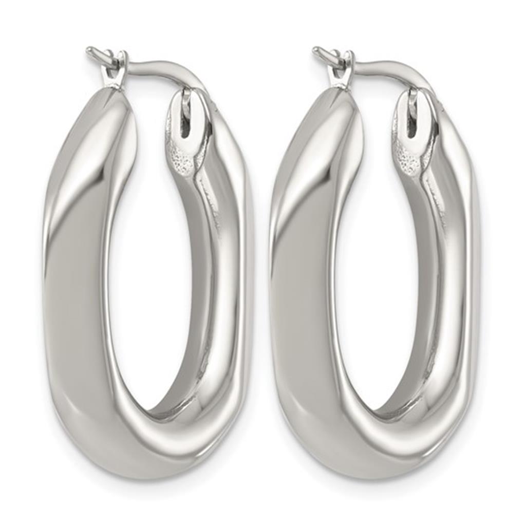 Stainless Steel Polished Tapered Oval Hoop Earrings