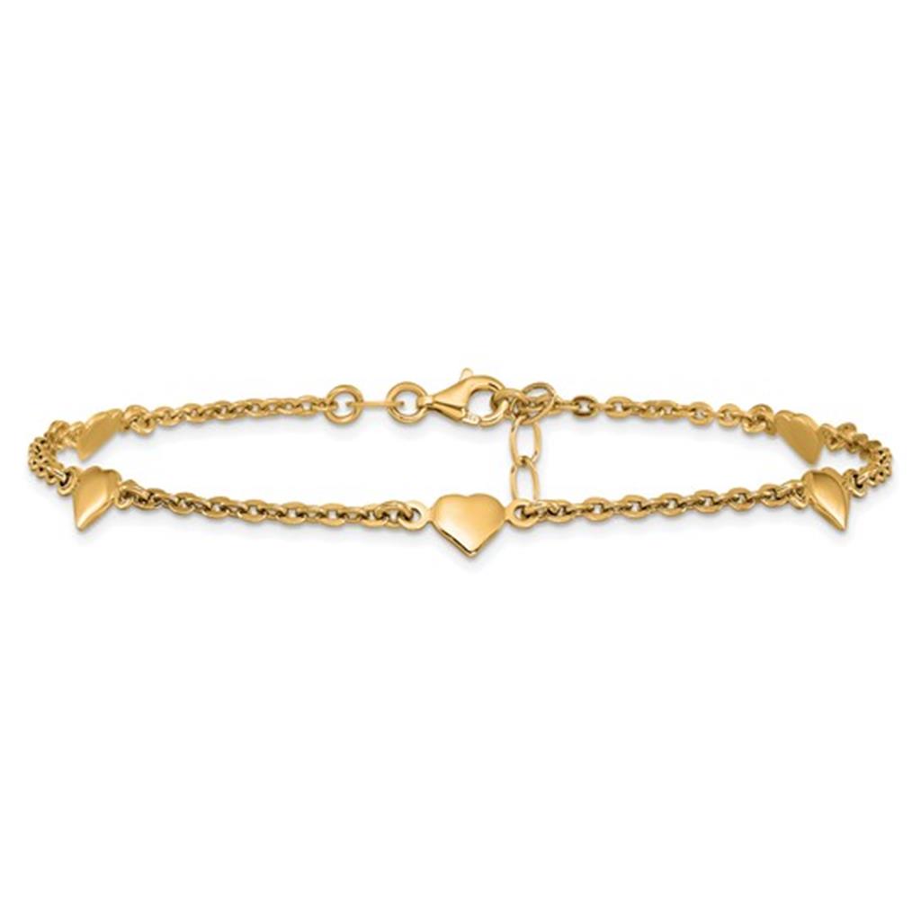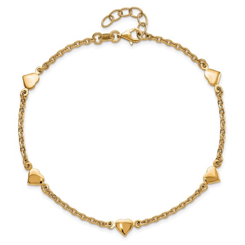 Sterling Silver Yellow Plate 5- Station Polished Heart 9'' Anklet