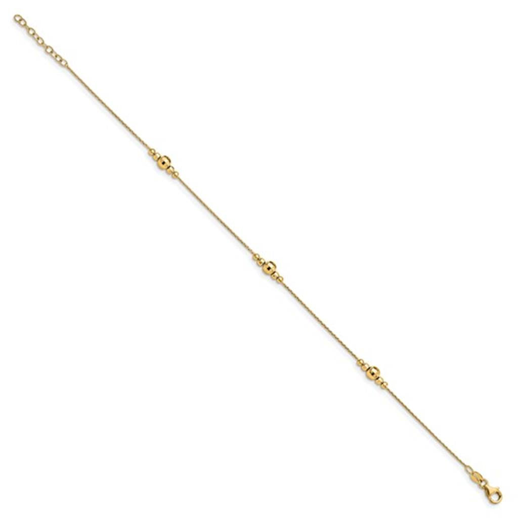 Sterling Silver Yellow Plated Mirror Bead 9'' Anklet