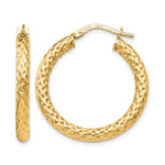 Sterling Silver Yellow Plated Polished Textured Hoop Earrings