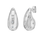 Sterling Silver Polished Puffed Raindrop Earring w/CZ's