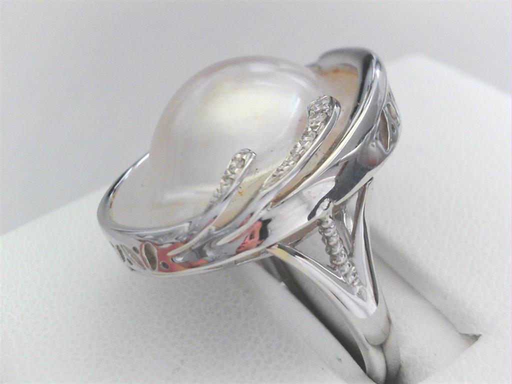 18Kt Wht .04ct Diamond / Mabe Pearl Ring