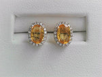 18Kt Y 1.16ct Oval Yellow Sapphire / .13ct Diamond Halo Post Earrings