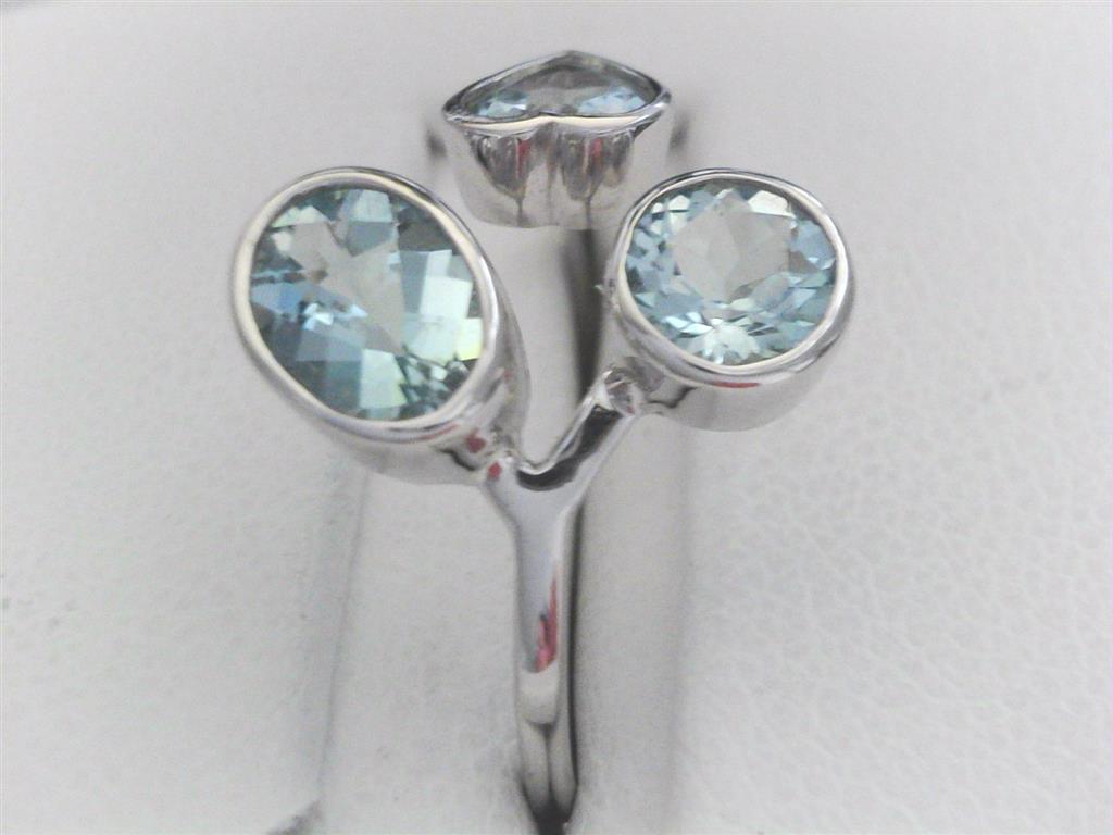 18Kt Wht 1.40ct Round, Oval, Heart Aquamarine Ring